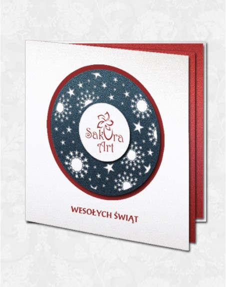 Oryginalna kartka świąteczna z ROZETĄ na środku kartki, w której wyeksponowane jest logo Firmy.