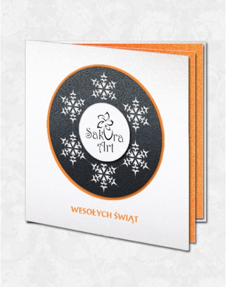 Oryginalna kartka świąteczna z ROZETĄ na środku kartki, w której wyeksponowane jest logo Firmy.