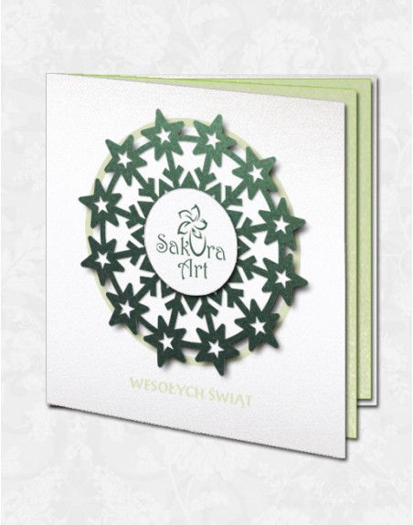 Oryginalna kartka świąteczna z ROZETĄ na środku kartki, w której wyeksponowane jest logo Firmy.