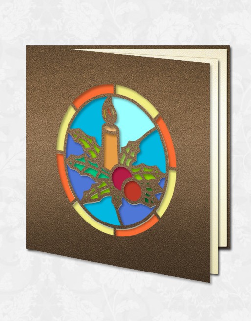 Prestiżowa kartka-witraż świąteczny ze STROIKIEM ŚWIĄTECZNYM na środku okładki.