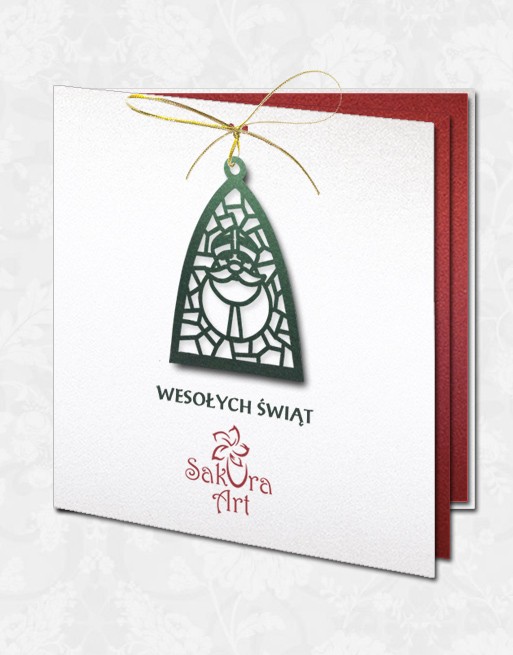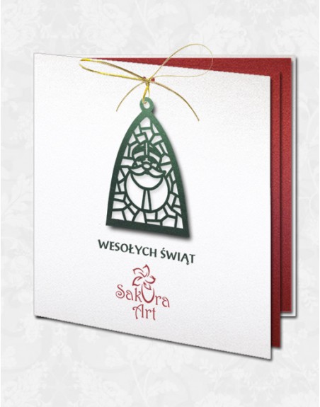 Oryginalna kartka świąteczna z ZAWIESZKĄ z mikołajem. Dzięki elementowi ruchomemu kartka zyskuje dodatkowy trzeci wymiar.